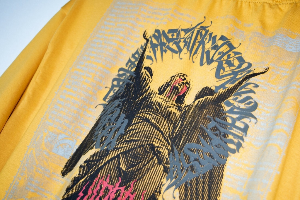 Camiseta ampla e larga nas mangas. No melhor estilo streetwear das ruas.